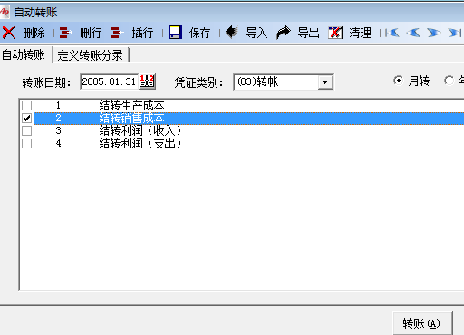 期末處理時,進入期末處理-自動轉賬,