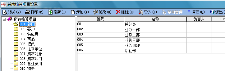 進入 基礎信息-輔助核算項目設置