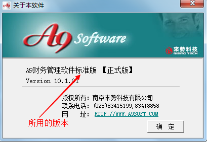 找到所用的版本型號,比如:A9財務管理軟件標準版。