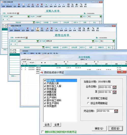 倉存管理作為財務管理軟件的一個子系統,主要提供對企業的原材料、半成品和庫存商品進行有效管理,包括商品采購、商品銷售和存貨的其它出庫、入庫管理。同時提供庫存商品明細賬和匯總表以及各類業務數據的查詢分析。另外系統還可將各類業務數據自動生成會計憑證。