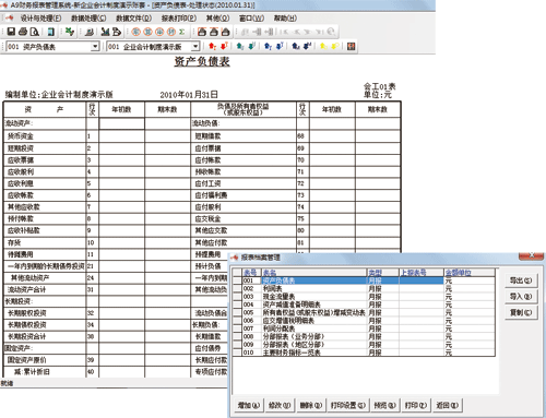 財務報表管理可以完成資產負債表、損益表、現金流量表、應交增值稅明細表、減值準備明細表等各種財務報表;同時您可以自定義各種報表,比如各種費用綜合報表、財務指標表、財務分析表等,以滿足單位的各種管理需求,系統提供“圖表顯示”功能使財務分析更直觀。