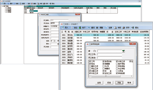 A9工資管理系統的主要功能有:員工名冊管理、人員調動、工資項目定義、計算公式定義、工資數據錄入、工資數據成批調整和自動生成銀行數據文件及會計憑證等。同時還提供豐富的表報,包括:工資匯總表、工資明細表、個人所得稅申報表、工資票面分配表等。